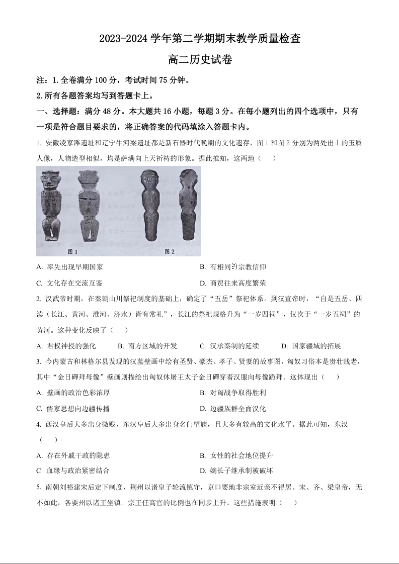 广东省东莞市高2025届下学期7月期末考试历史+答案