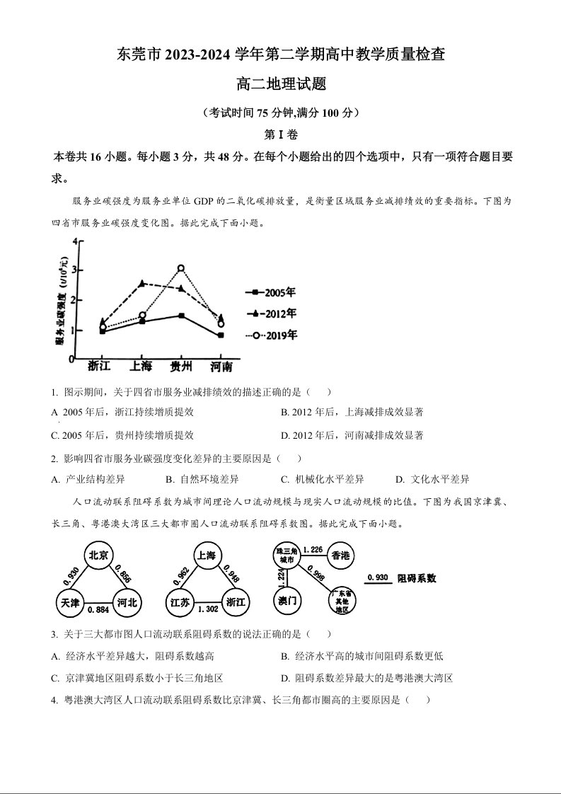 广东省东莞市高2025届下学期7月期末考试地理+答案