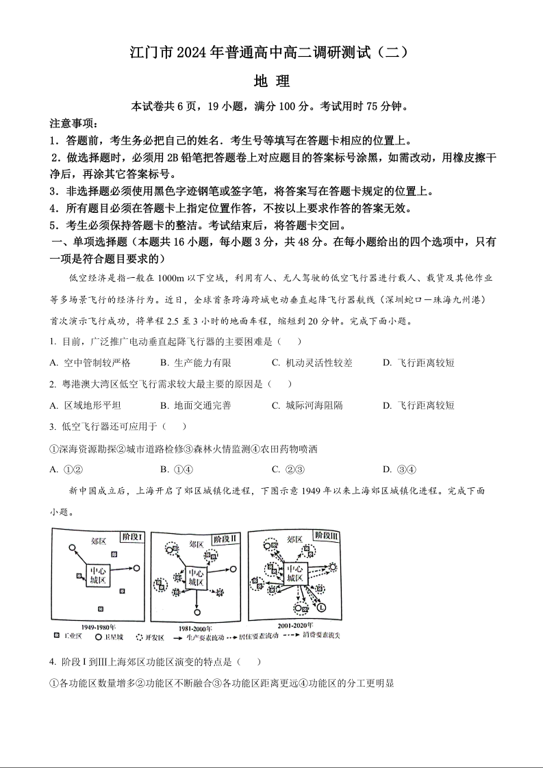 广东省江门市高2025届下学期7月期末考试地理+答案