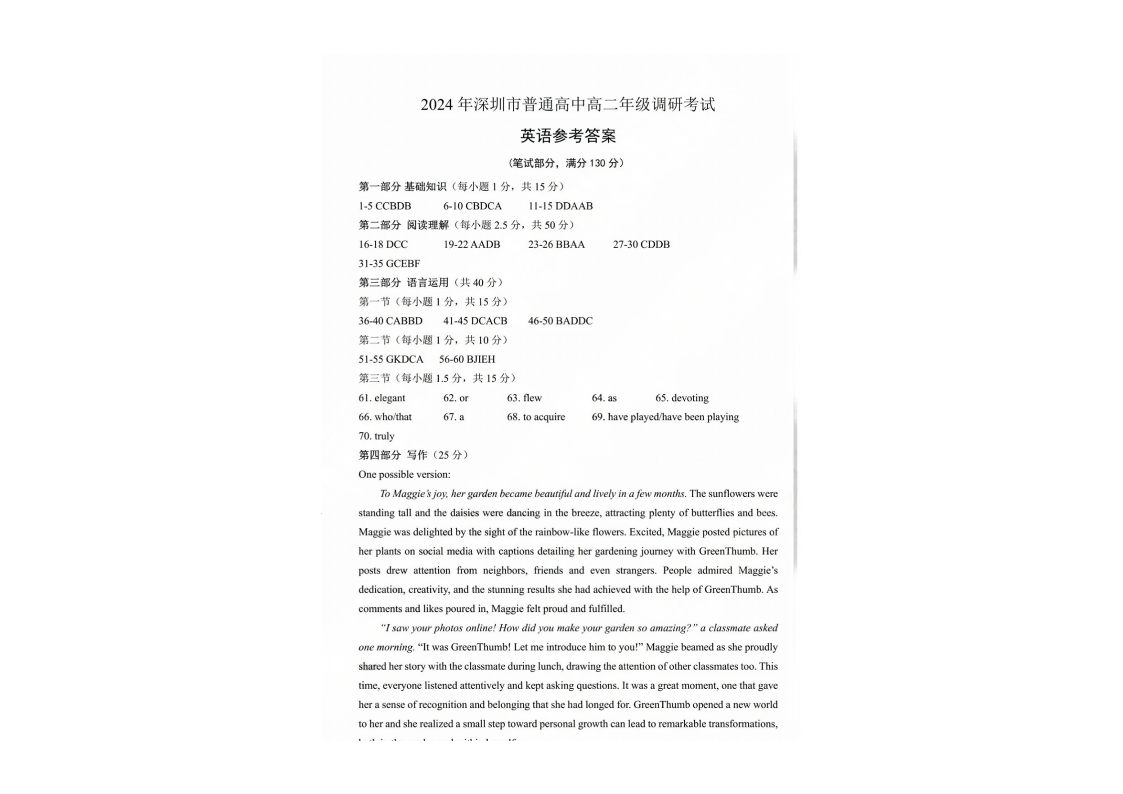 广东省深圳市高2025届下学期7月期末调研考试英语答案
