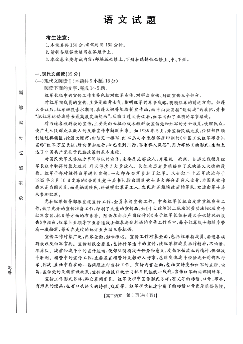 广西壮族自治区贵港市高2025届下学期期末教学质量监测语文