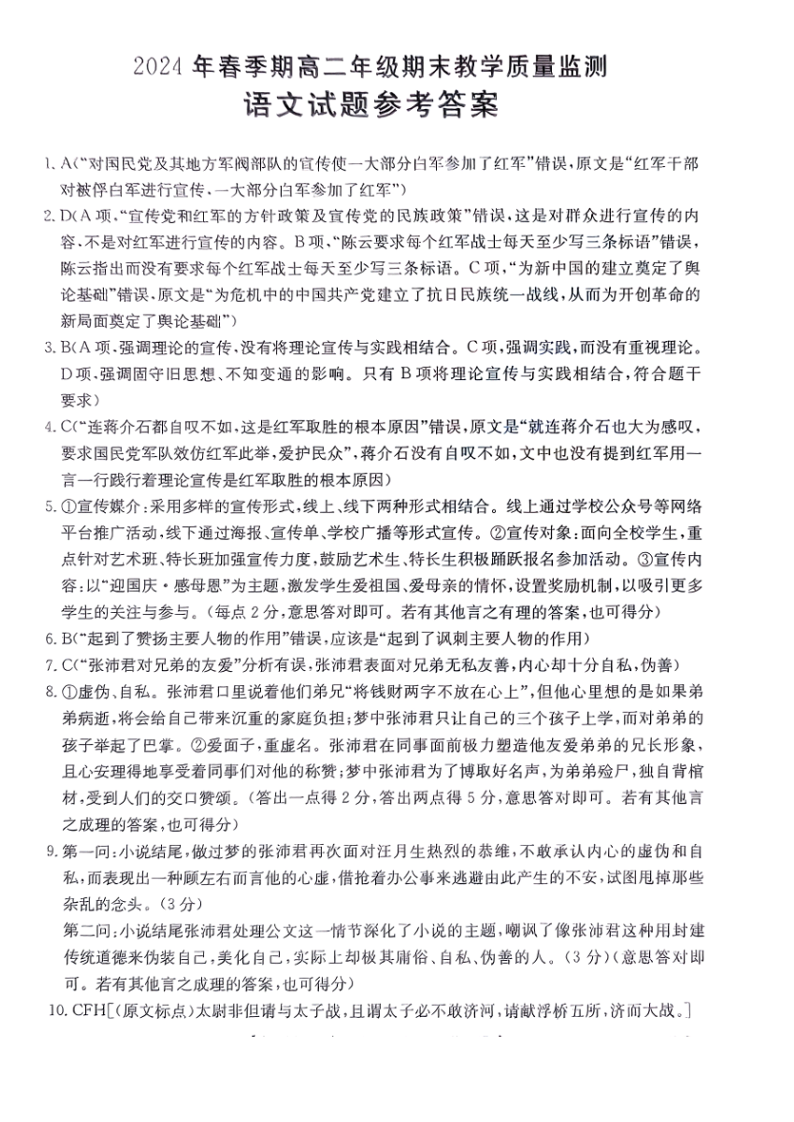 广西壮族自治区贵港市高2025届下学期期末教学质量监测语文答案