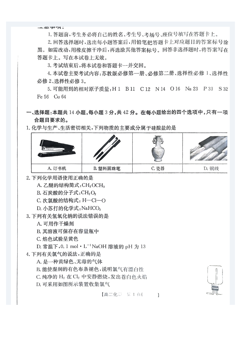 广西壮族自治区贵港市高2025届下学期期末教学质量监测化学