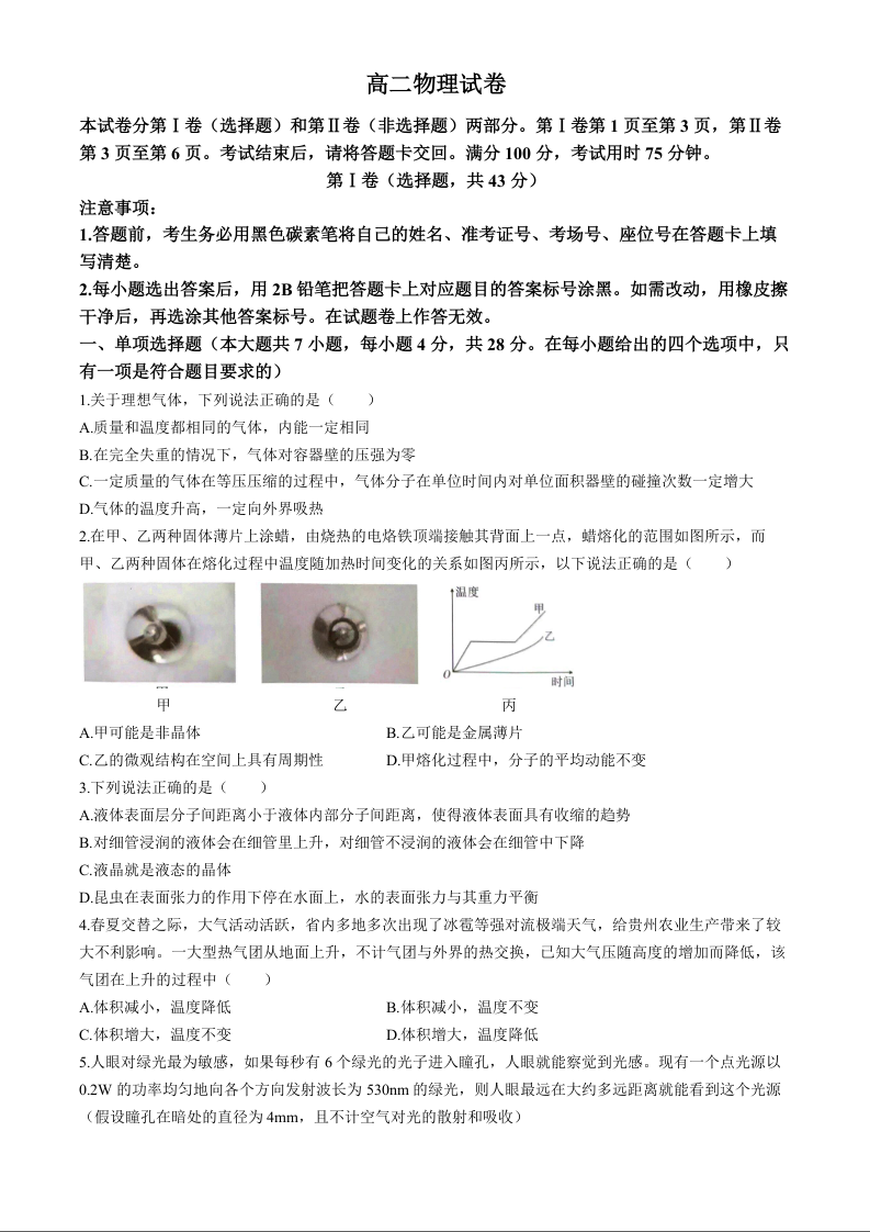 贵州省贵阳市第一中学高二下学期第四次月考物理+答案
