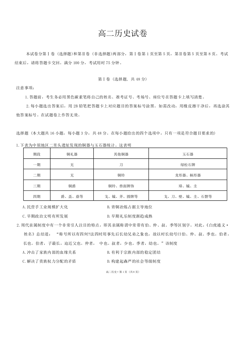贵州省贵阳市第一中学高二下学期第四次月考历史