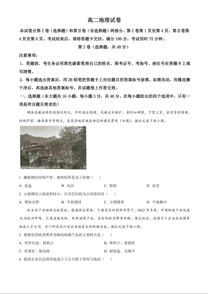 贵州省贵阳市第一中学高二下学期第四次月考地理+答案