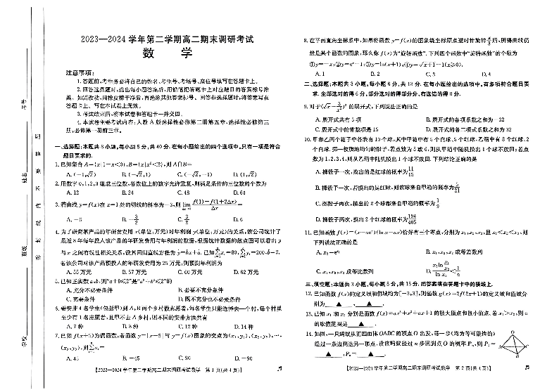 河北省保定市2023—2024学年第二学期高二期末调研考试数学
