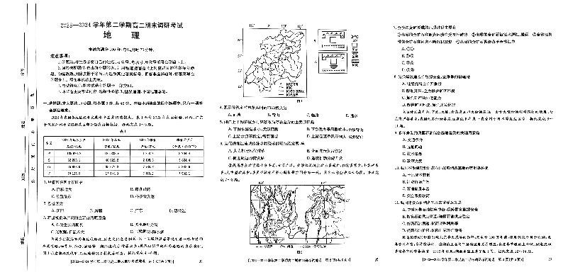 河北省保定市2023—2024学年第二学期高二期末调研考试地理