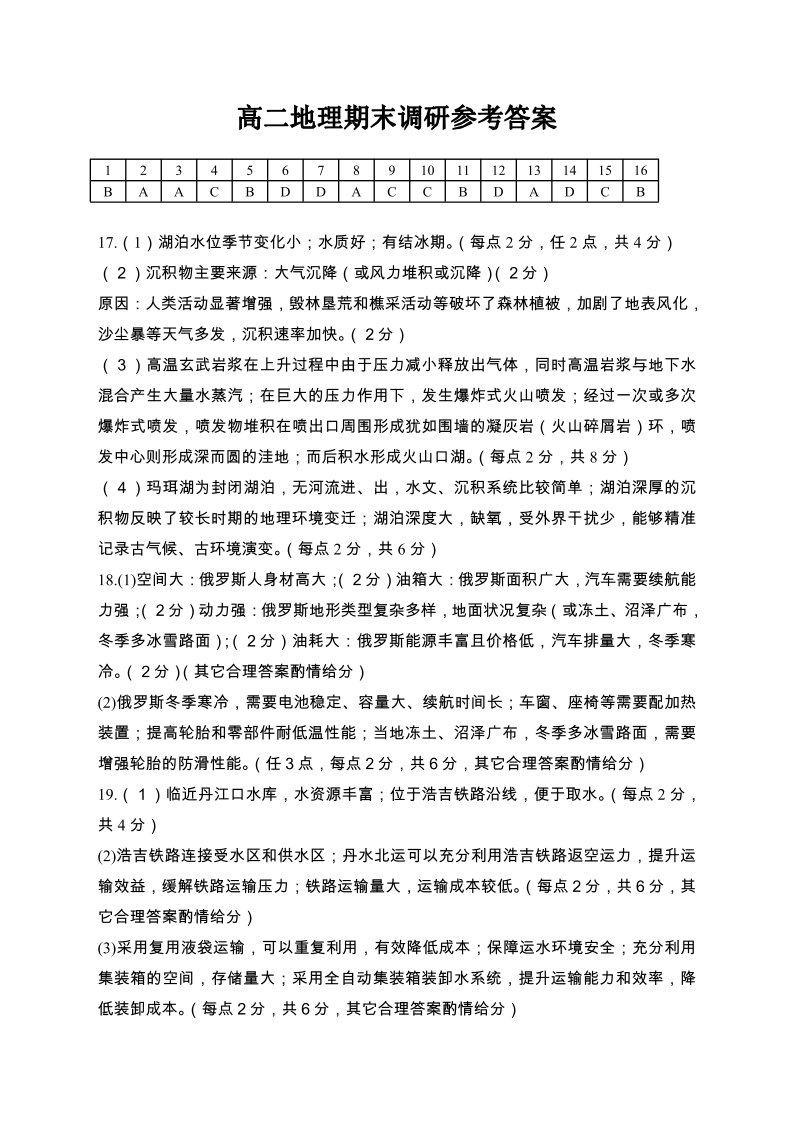 河南省开封市高2025届学期高二期末调研考试地理答案