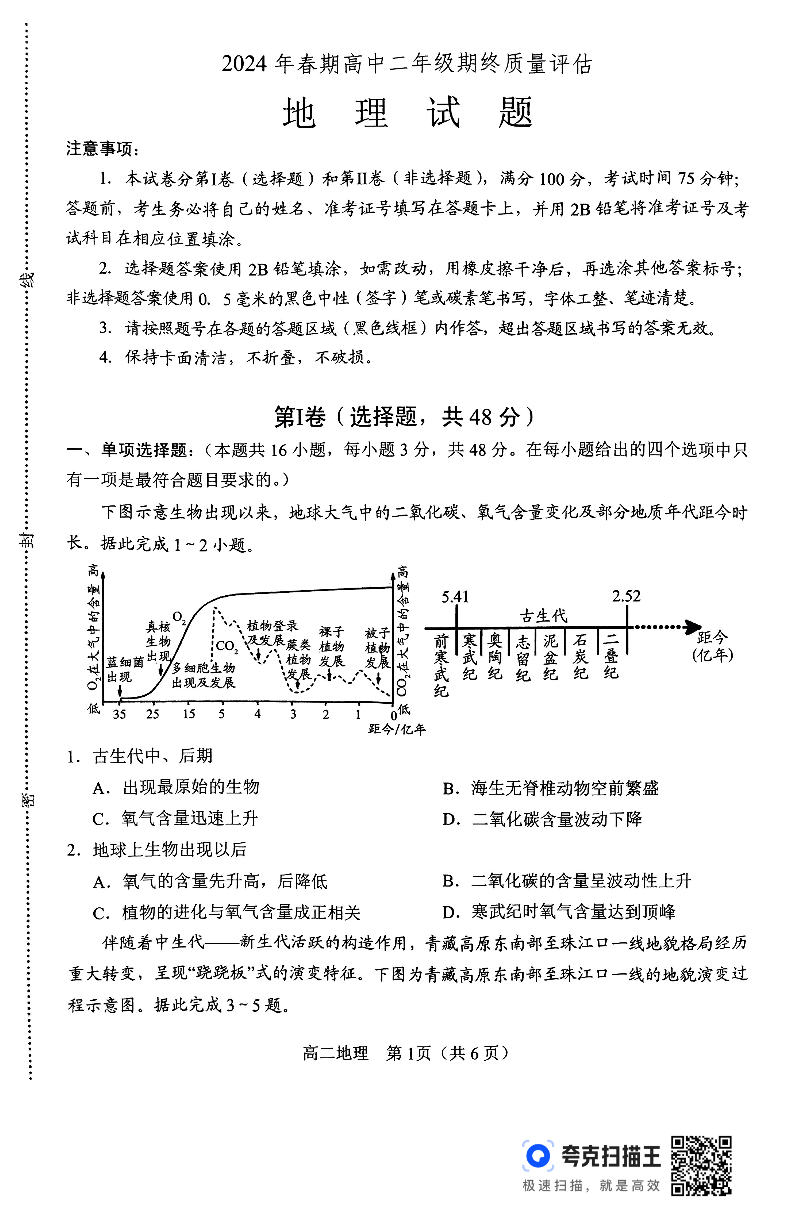 河南省南阳市2024年春期高中二年级期终质量评估地理