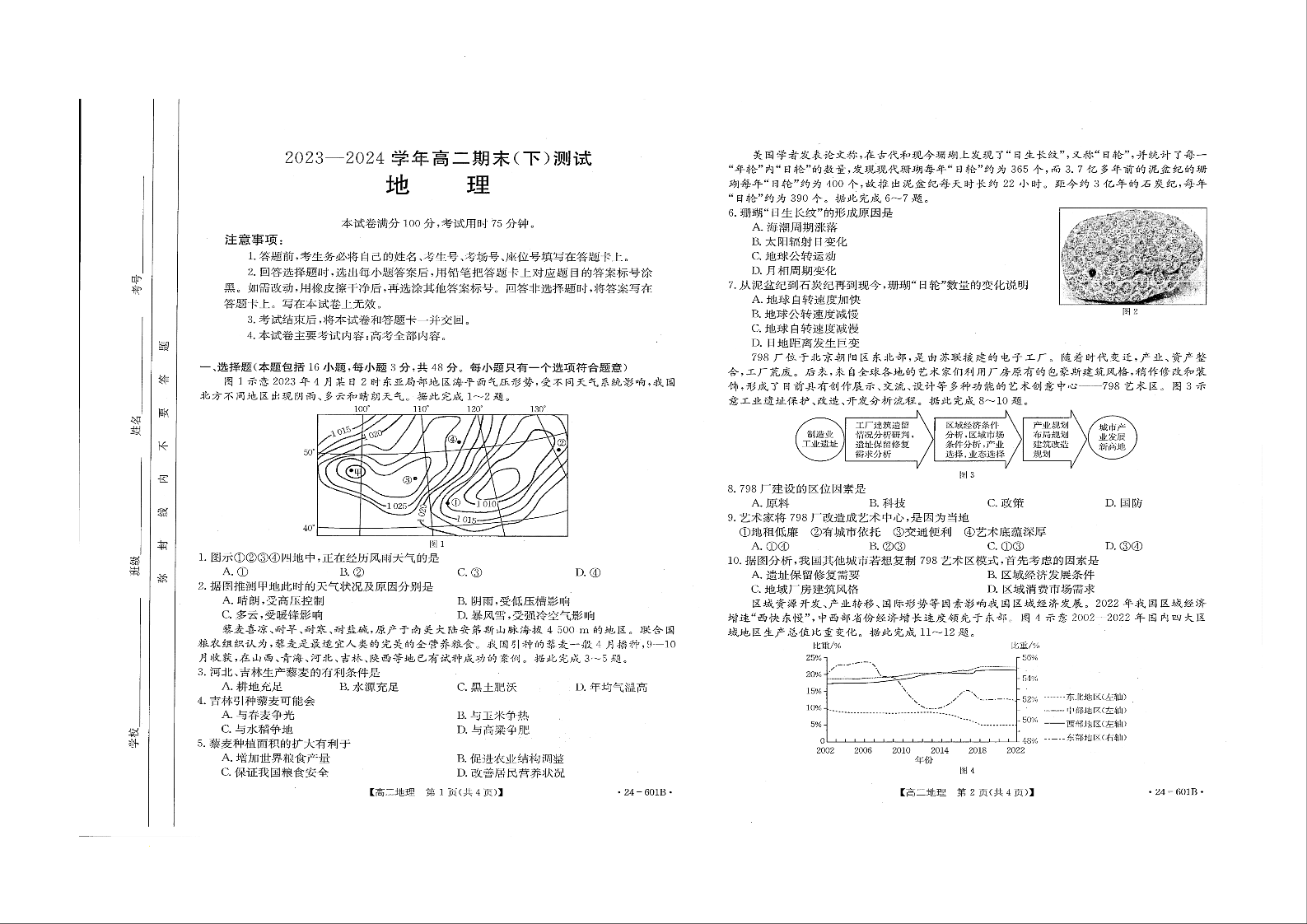 河南省新乡市2023-2024学年高二下期末(下)测试地理