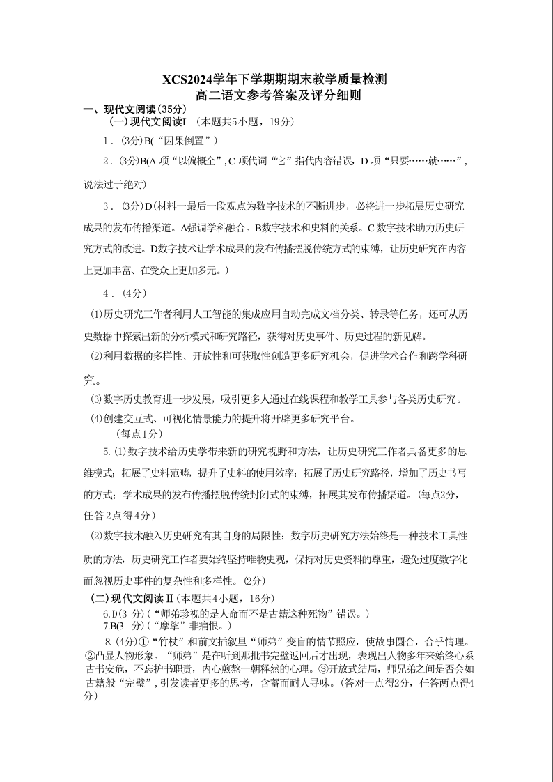 河南省许昌市高2025届下学期7月期末教学质量检测语文答案
