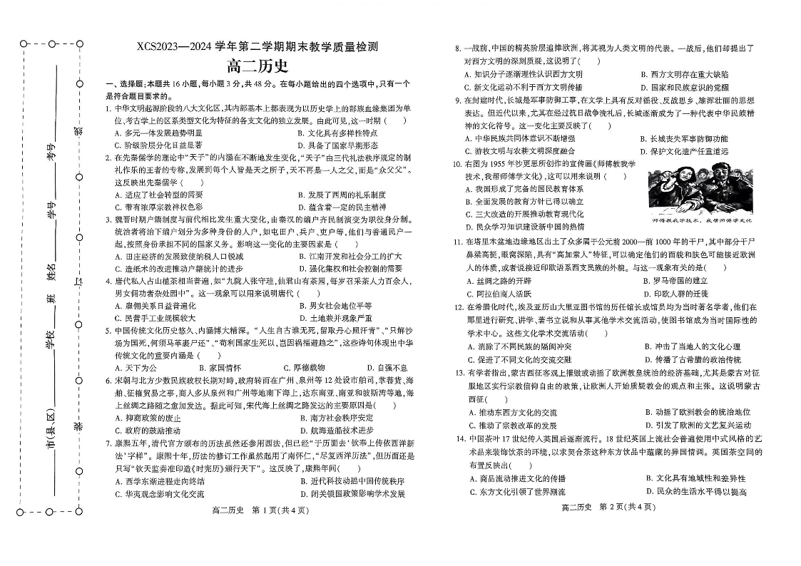 河南省许昌市高2025届下学期7月期末教学质量检测历史