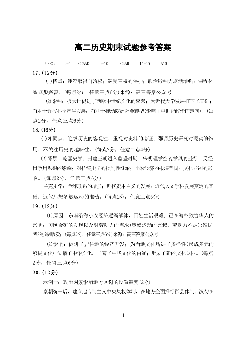 河南省许昌市高2025届下学期7月期末教学质量检测历史答案