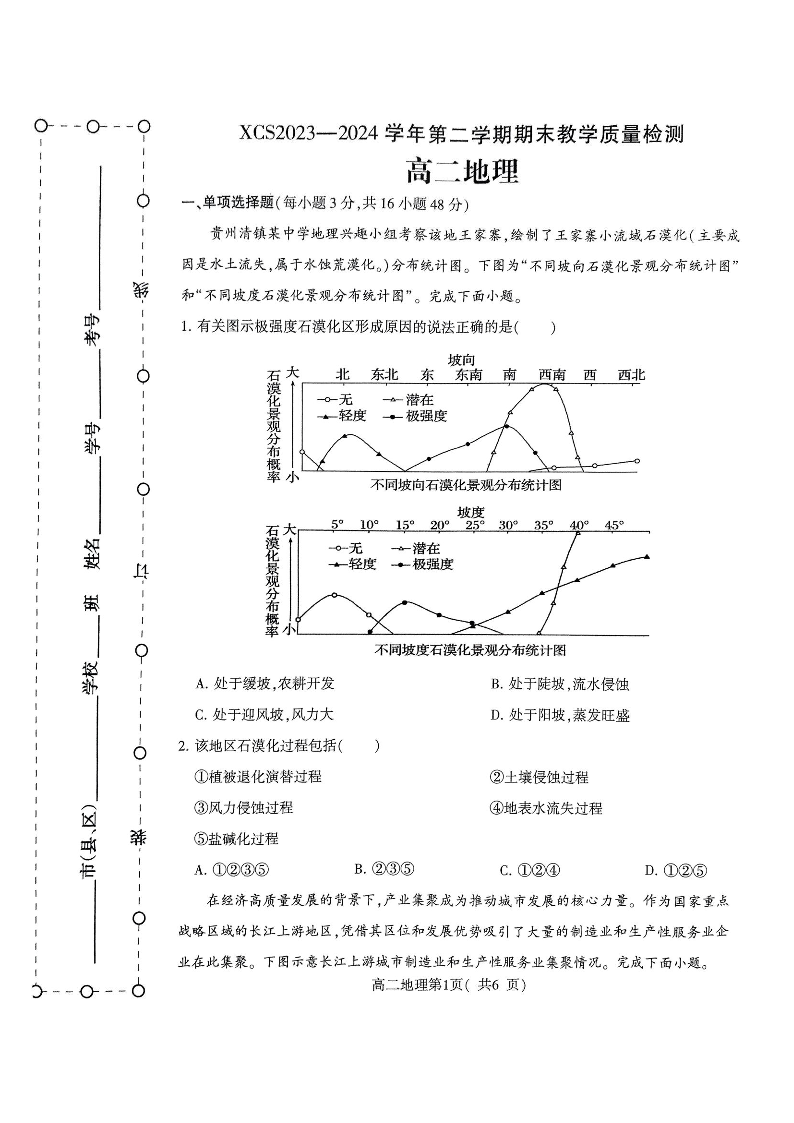 河南省许昌市高2025届下学期7月期末教学质量检测地理