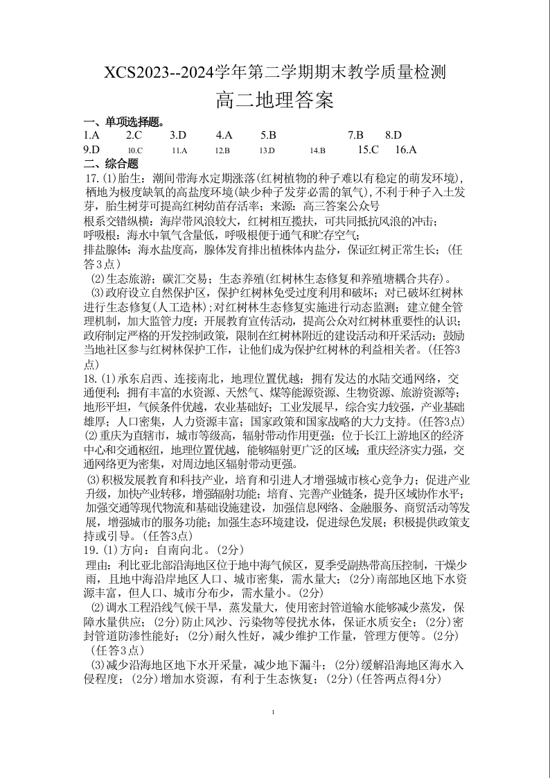 河南省许昌市高2025届下学期7月期末教学质量检测地理答案