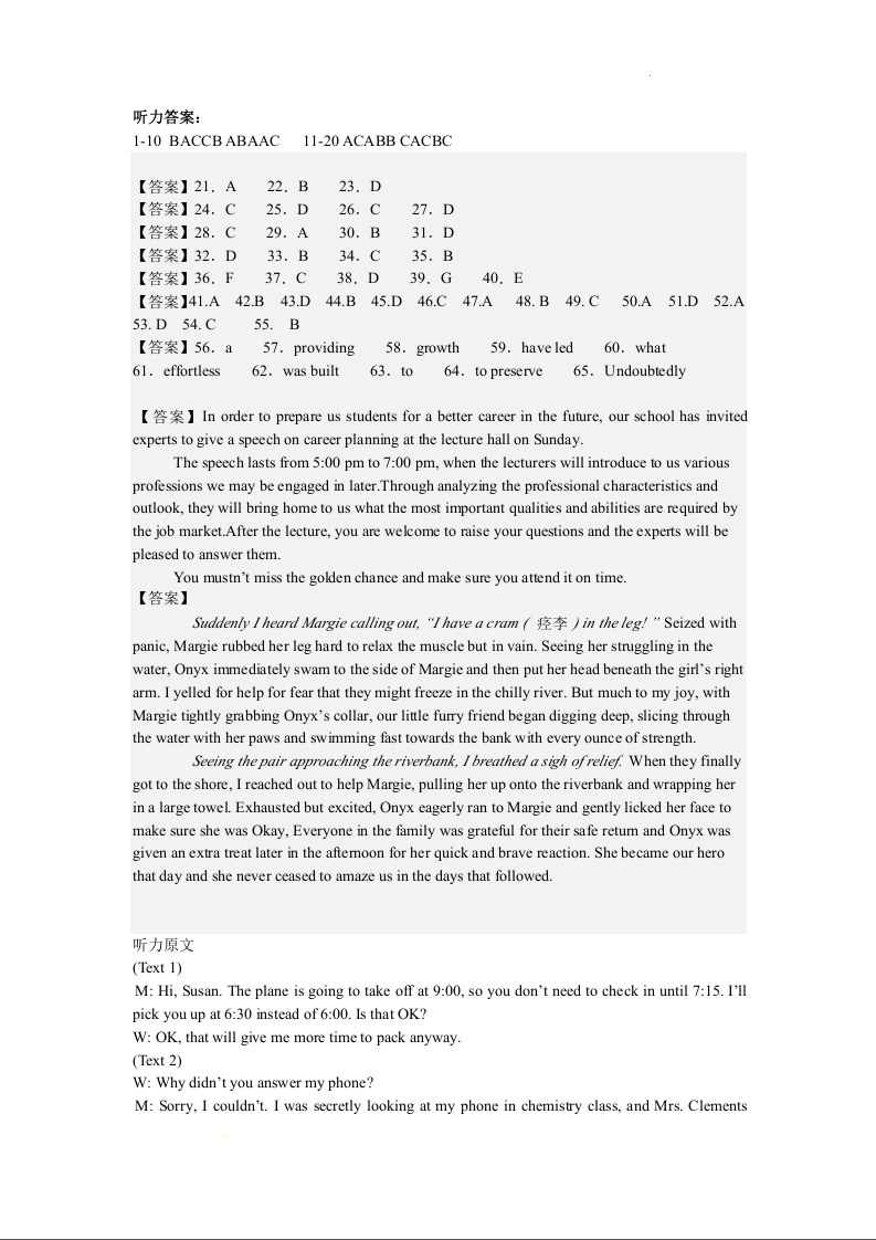 黑龙江省哈尔滨师范大学附属中学、大庆铁人中学2025届下学期期末联考英语答案