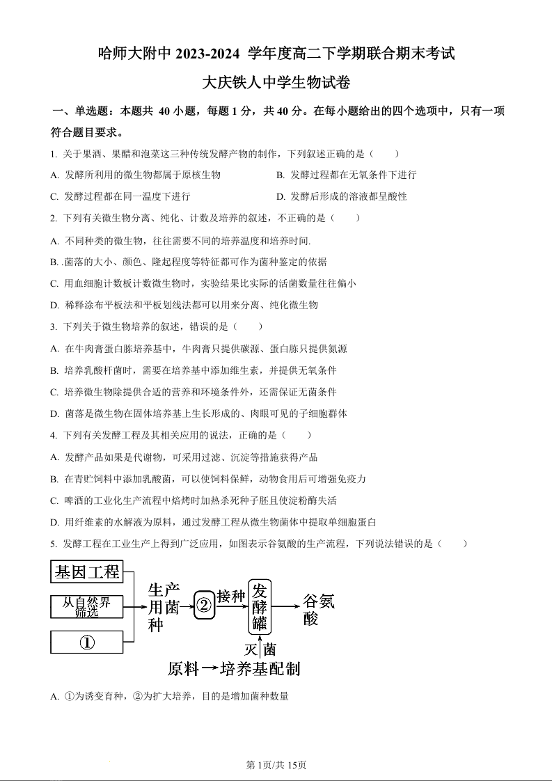 黑龙江省哈尔滨师范大学附属中学、大庆铁人中学2025届下学期期末联考生物