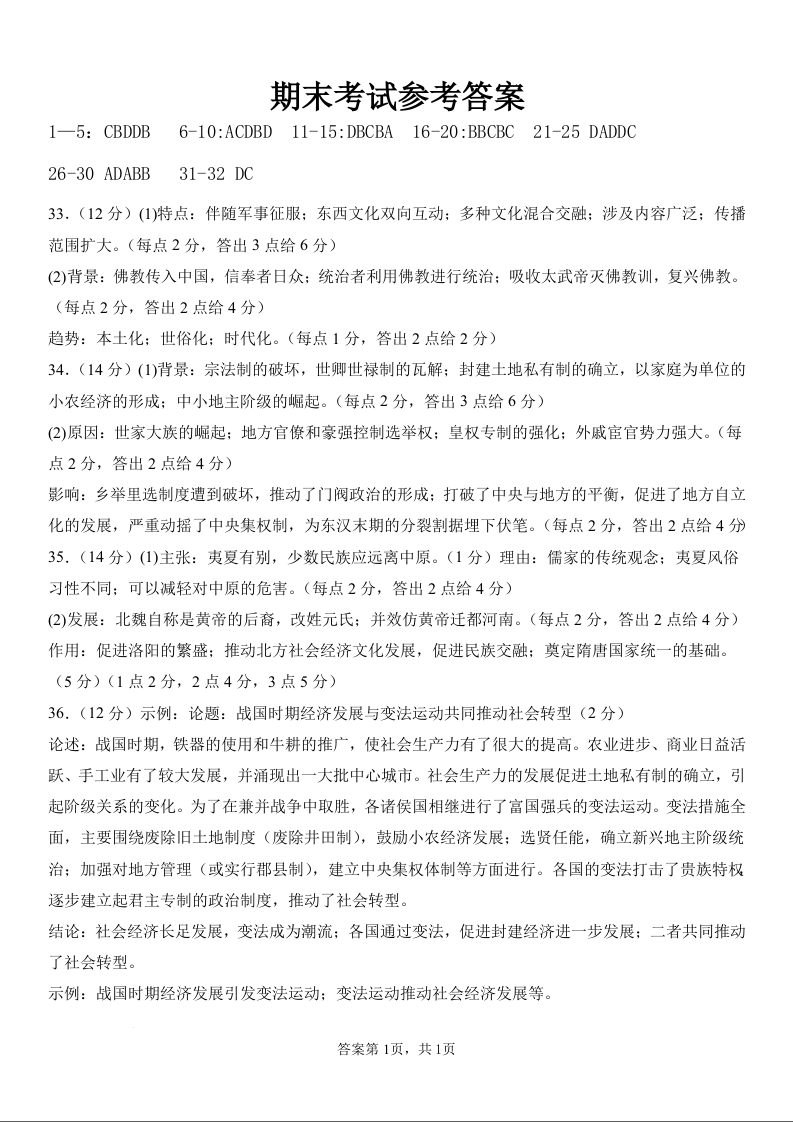 黑龙江省哈尔滨师范大学附属中学、大庆铁人中学2025届下学期期末联考历史答案