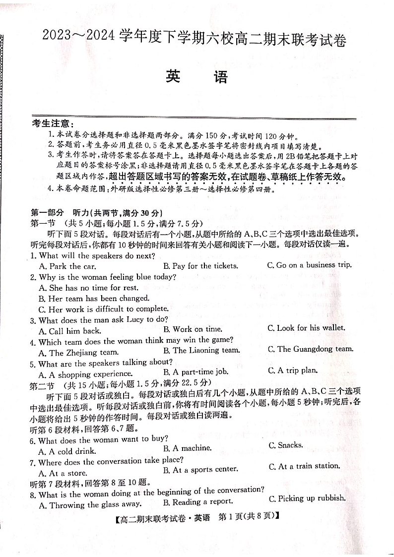黑龙江省哈尔滨市六校高2025届下学期7月期末联考英语+答案