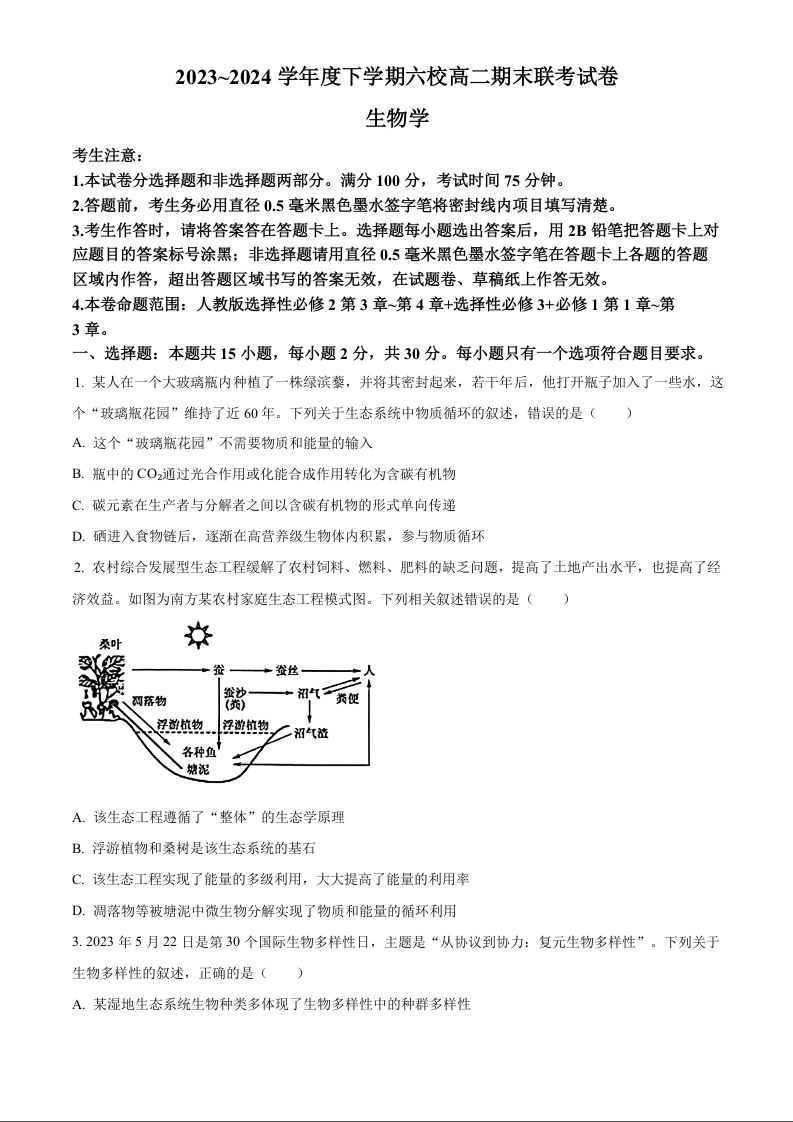 黑龙江省哈尔滨市六校高2025届下学期7月期末联考生物+答案