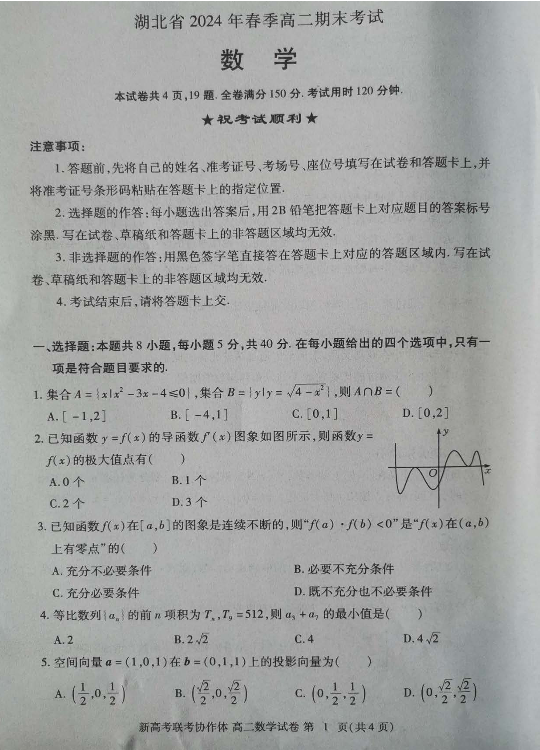 湖北省部分市州高2025届年级期末教学质量监测数学