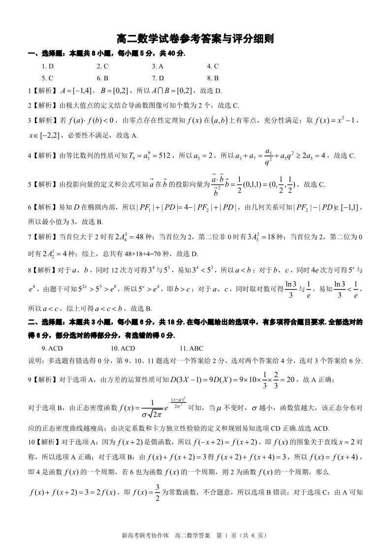 湖北省部分市州高2025届年级期末教学质量监测数学答案