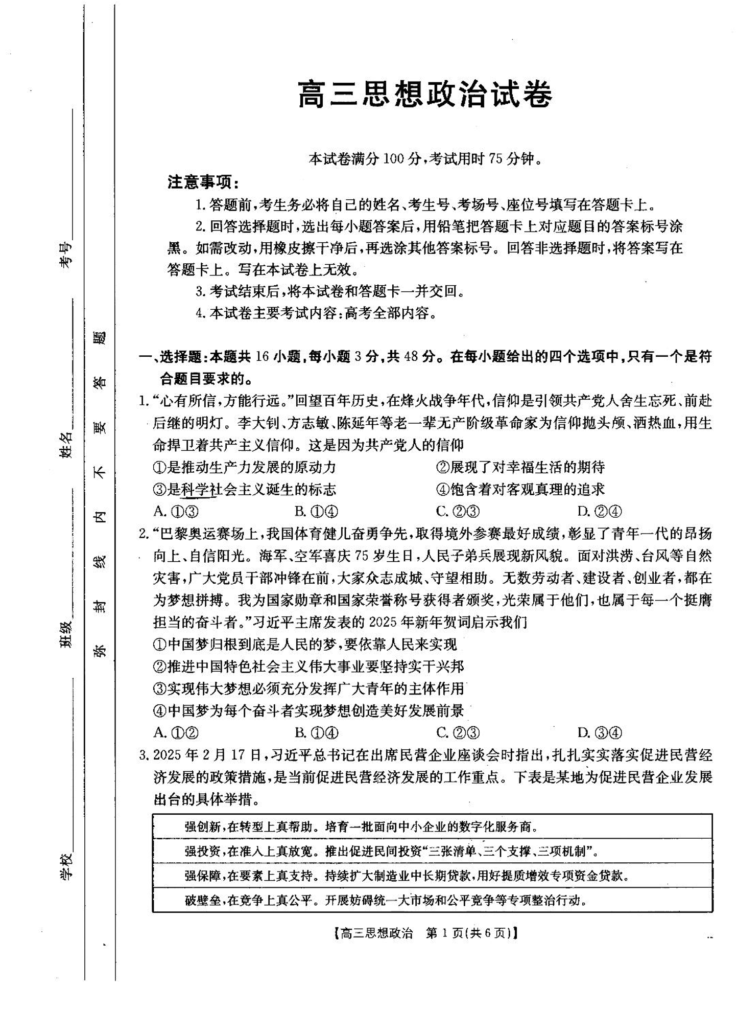 青海省区域高中2024-2025学年下学期3月高三联考政治+答案