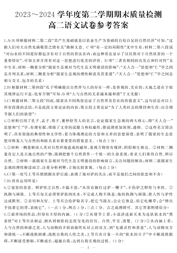 湖北省武汉市江岸区2023-2024学年高二下学期7月期末考试语文答案