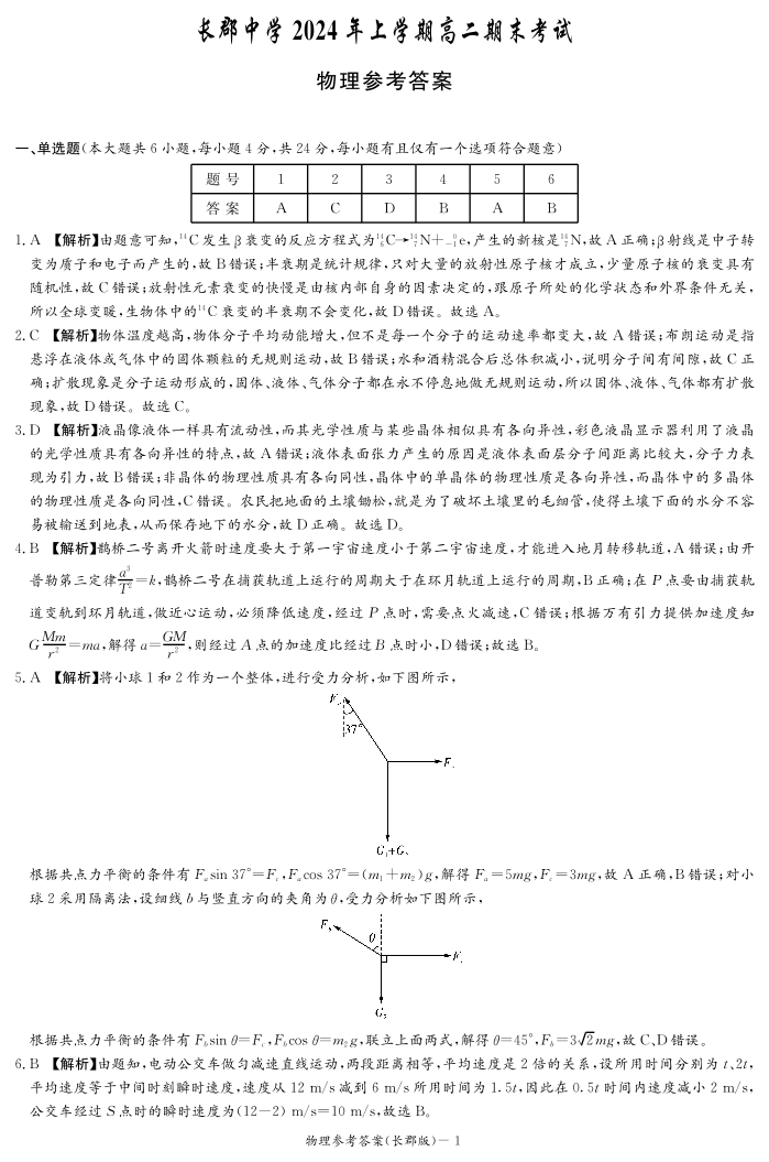 湖南省长沙市长郡中学高2025届下学期期末考试物理答案