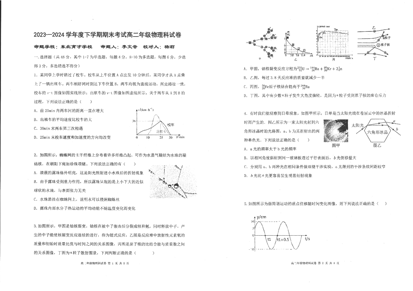 辽宁省五校联考(辽宁省实验中学、大连八中、东北育才学校、大连二十四中、鞍山一中)高2025届下学期7月期末考试物理