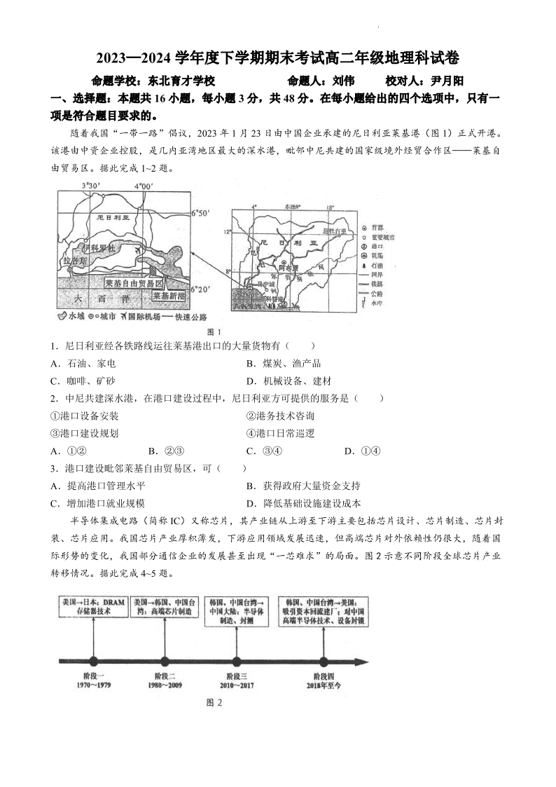 辽宁省五校联考(辽宁省实验中学、大连八中、东北育才学校、大连二十四中、鞍山一中)高2025届下学期7月期末考试地理