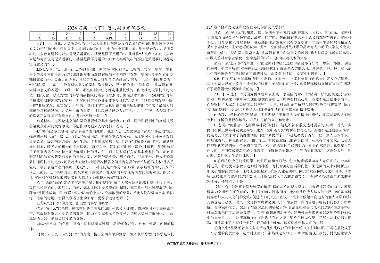 宁夏回族自治区银川一中高2025届下学期期末考试语文答案