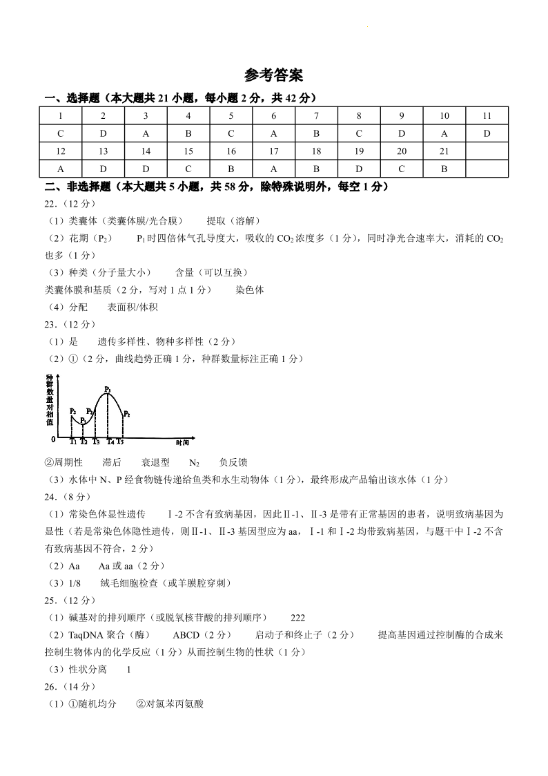 浙江省台州市2023-2024学年高二下学期6月期末考试生物答案