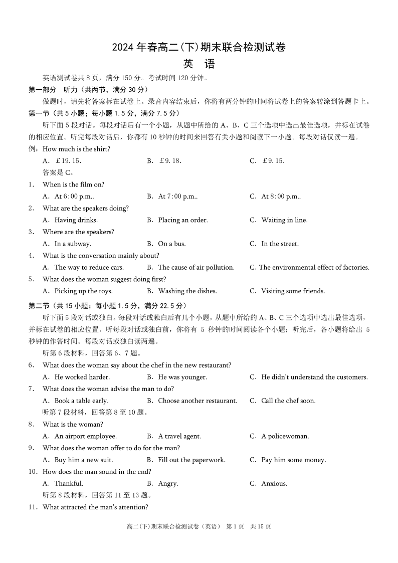 重庆康德卷高2025届(下)期末联合检测英语