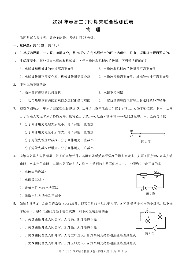 重庆康德卷高2025届(下)期末联合检测物理