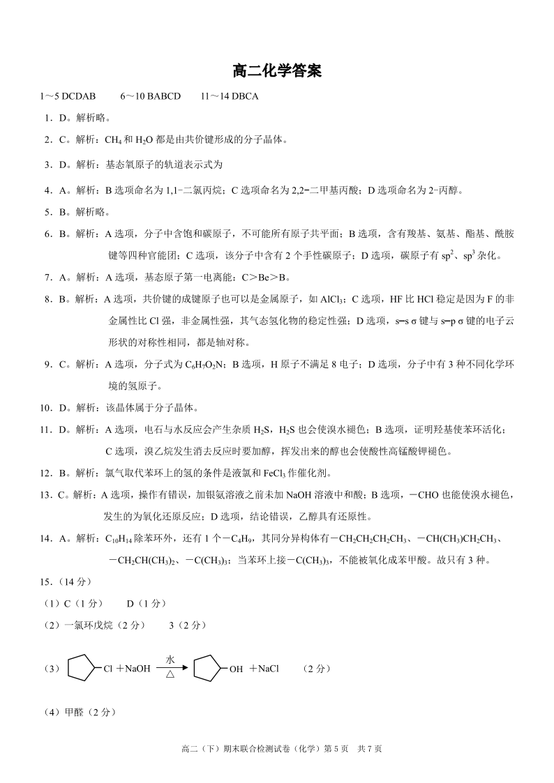 重庆康德卷高2025届(下)期末联合检测化学答案