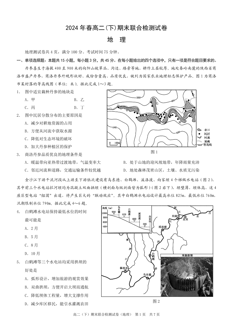 重庆康德卷高2025届(下)期末联合检测地理