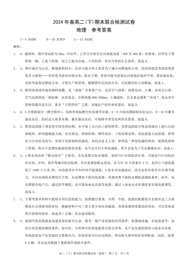 重庆康德卷高2025届(下)期末联合检测地理答案