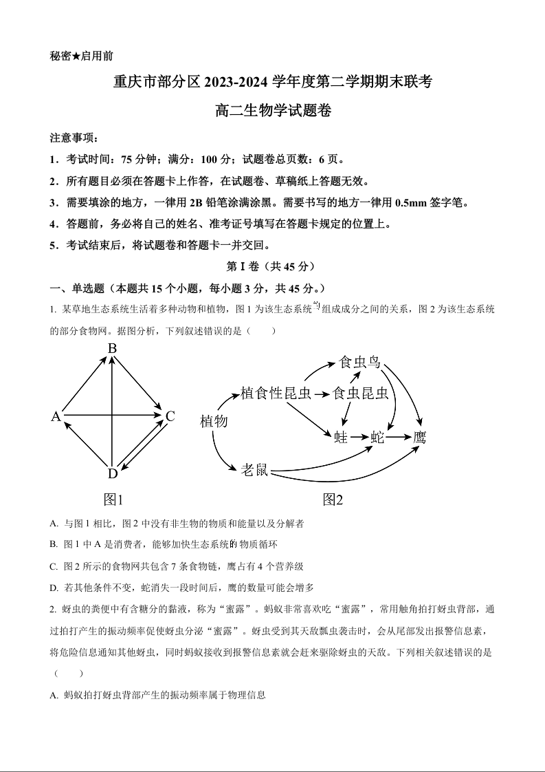 重庆市万州区高2025届下学期7月期末考试生物+答案