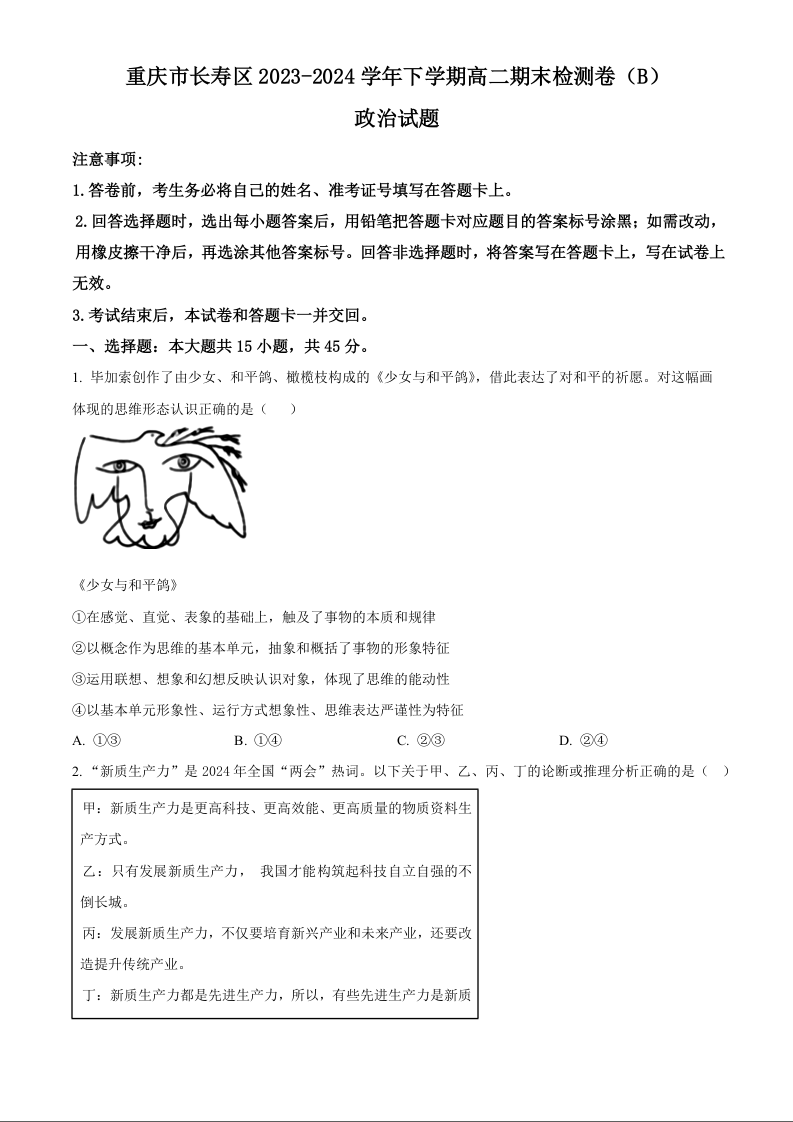重庆市长寿区八校高2025届下学期7月期末联考政治+答案