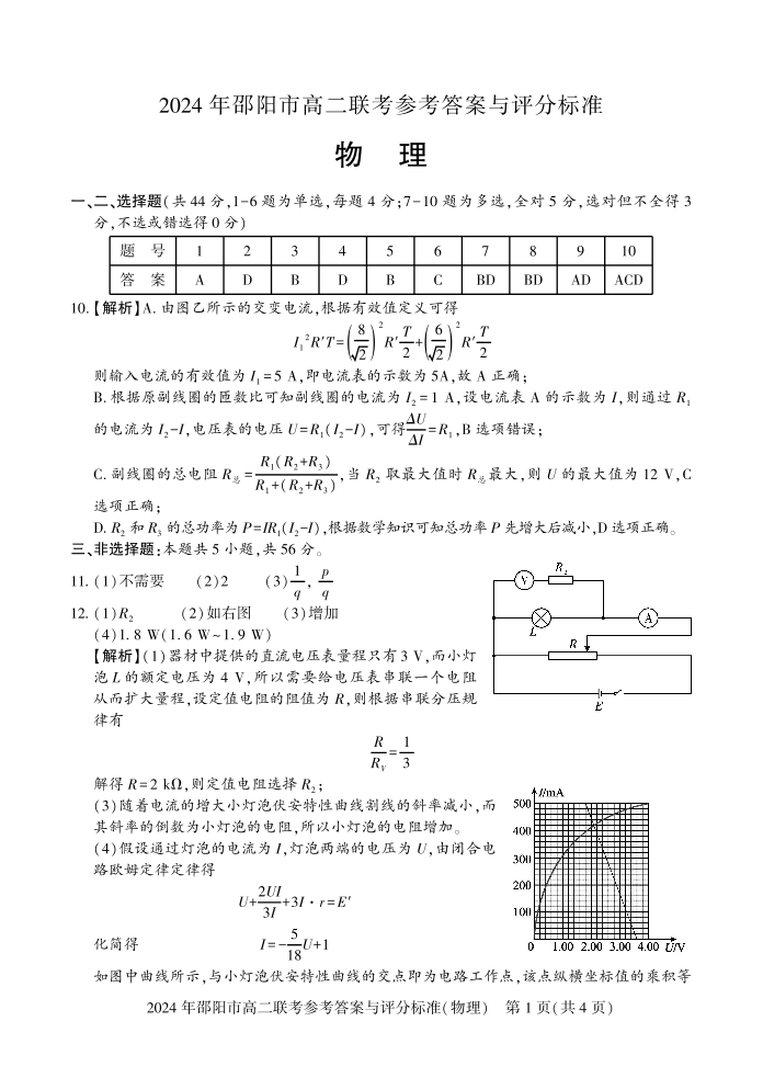 湖南省邵阳市高2025届下学期7月期末联考物理答案