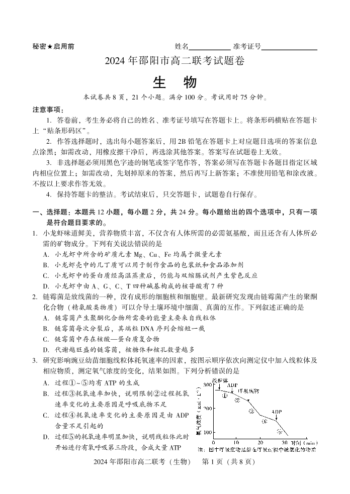 湖南省邵阳市高2025届下学期7月期末联考生物