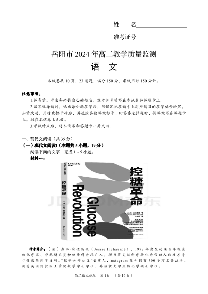 湖南省岳阳市2023-2024学年高二下学期期末考试语文
