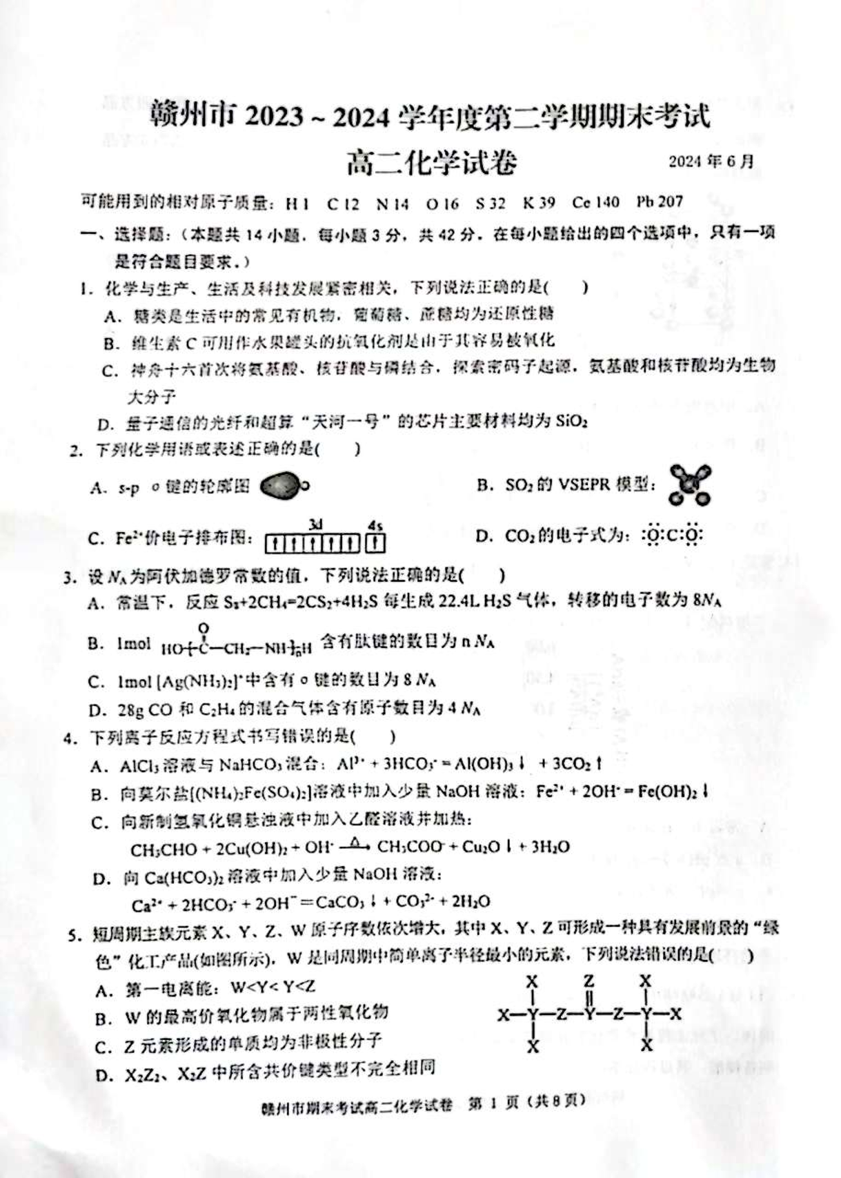 江西省赣州市高2025届下学期7月期末考试化学+答案