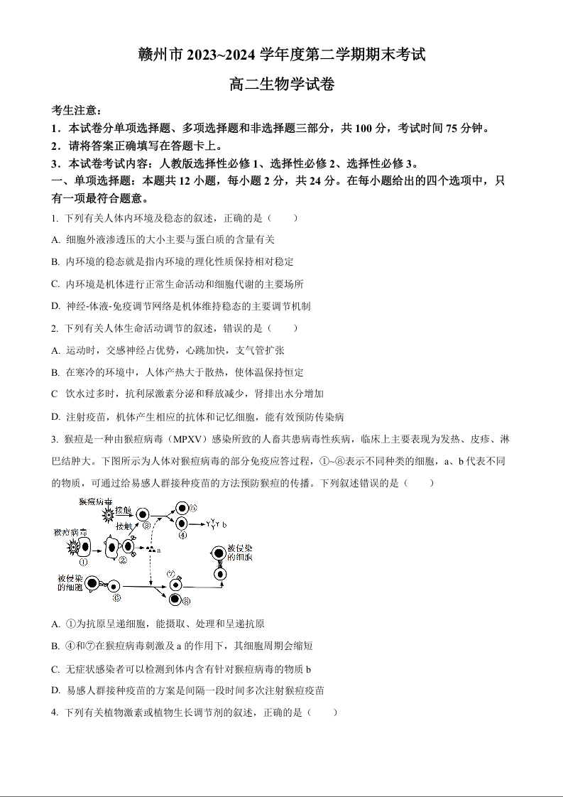 江西省赣州市高2025届下学期7月期末考试生物+答案