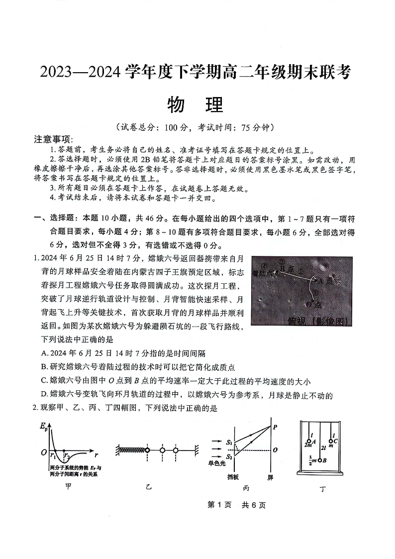 辽宁省点石联考高2025届下学期7月期末联考物理