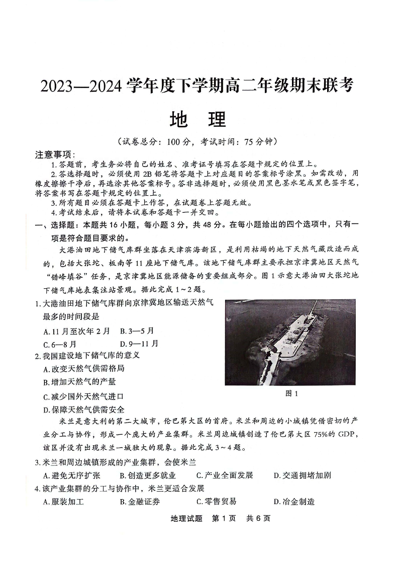 辽宁省点石联考高2025届下学期7月期末联考地理