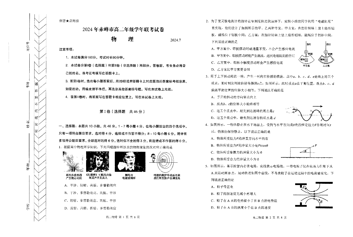 内蒙古自治区赤峰市高2025届下学期7月期末考试物理