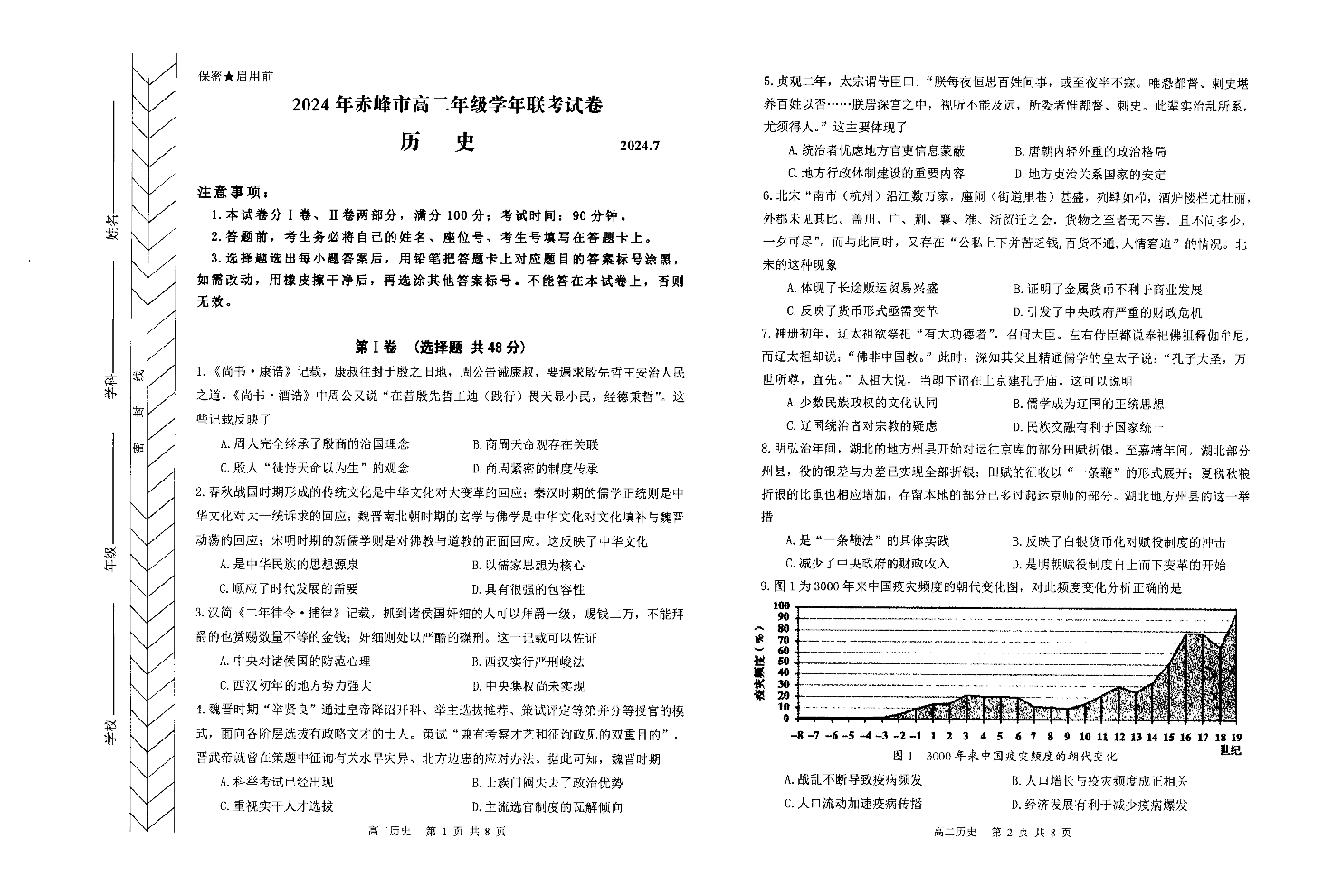 内蒙古自治区赤峰市高2025届下学期7月期末考试历史
